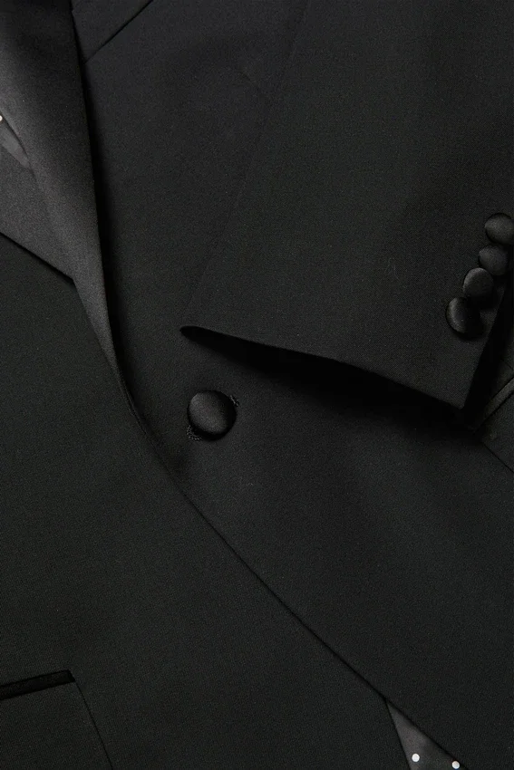 Black Shawl Collar with Single-Button Closure | Double-Vent in Back with Non-Functioning Button Cuffs and a Bemberg-Lining