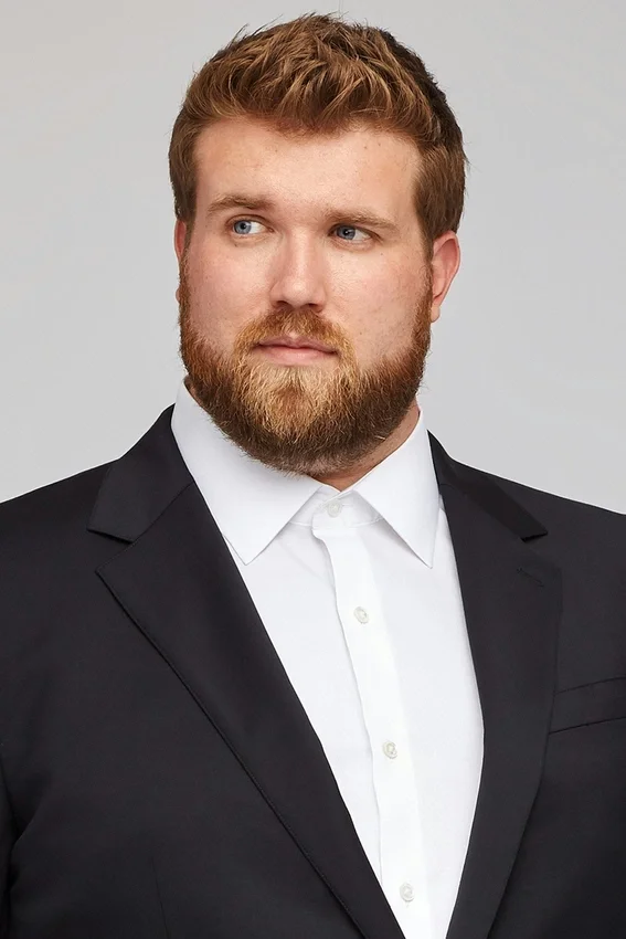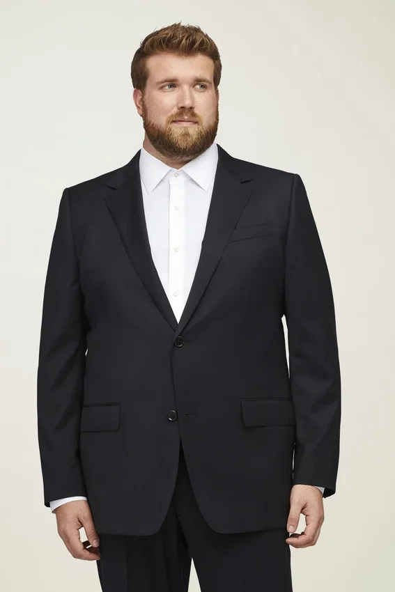 Model is 6’6″ with a 50″ Chest, and is Wearing a 50L Suit Jacket.
