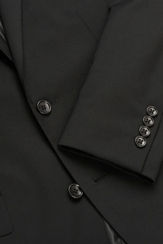 Jacket Features Modern Notch Lapels. It’s Double-Button, Double-Vent, with Non-Functioning Button Cuffs, Bemberg Lining, and an Interior Passport Pocket for When You Travel. Pants Feature a Classic Hook and Bar Closure and Button-Through Back Pockets.
