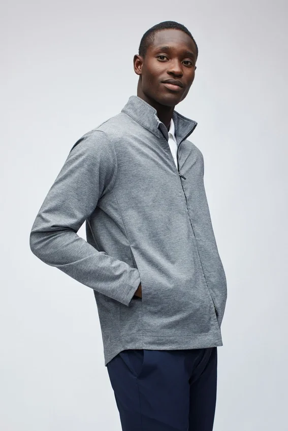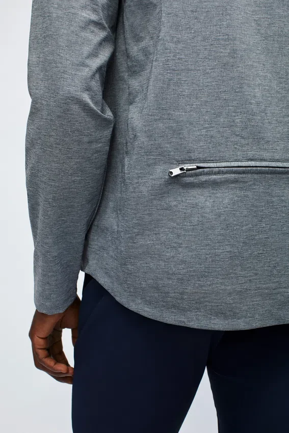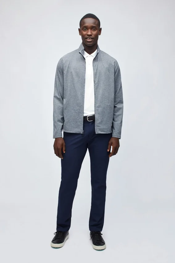 The Packable Golf Jacket is Designed to Roll Completely up into the Back Zipper Pocket. Highly Portable, Available in Grey Slim Fit. Free Shipping!