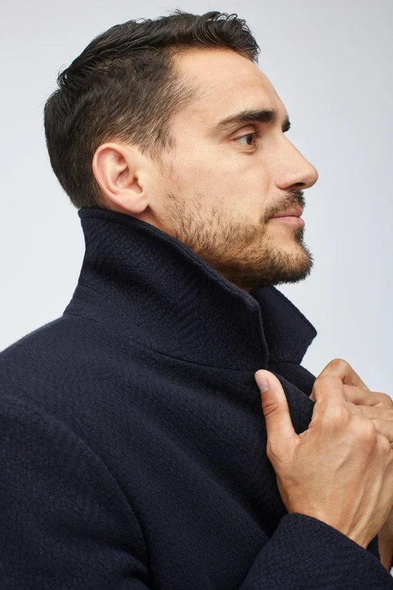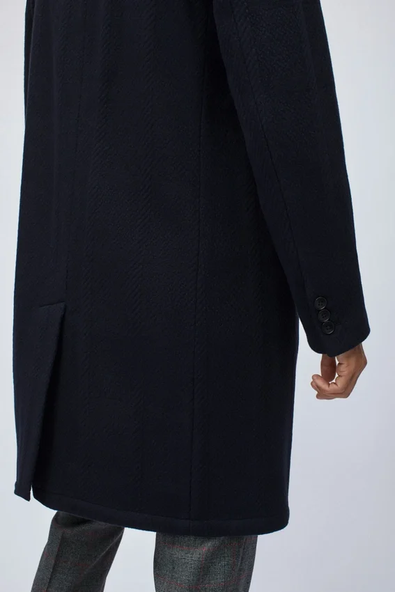 Model is 6’2″ with a 40″ Chest, and is Wearing a Size 40R. Fit Intent: This Topcoat is Designed for a Relaxed Fit. Size Down if You Prefer a More Fitted Coat.