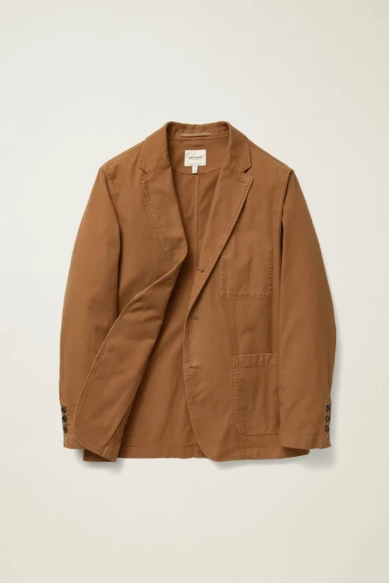 Notch Lapel | Three-Roll-Two-Button Stance | Completely Unlined and Unconstructed | Patch Pockets at Waist | Interior Pocket | Functional Cuff Buttons | Interior Locker Loop