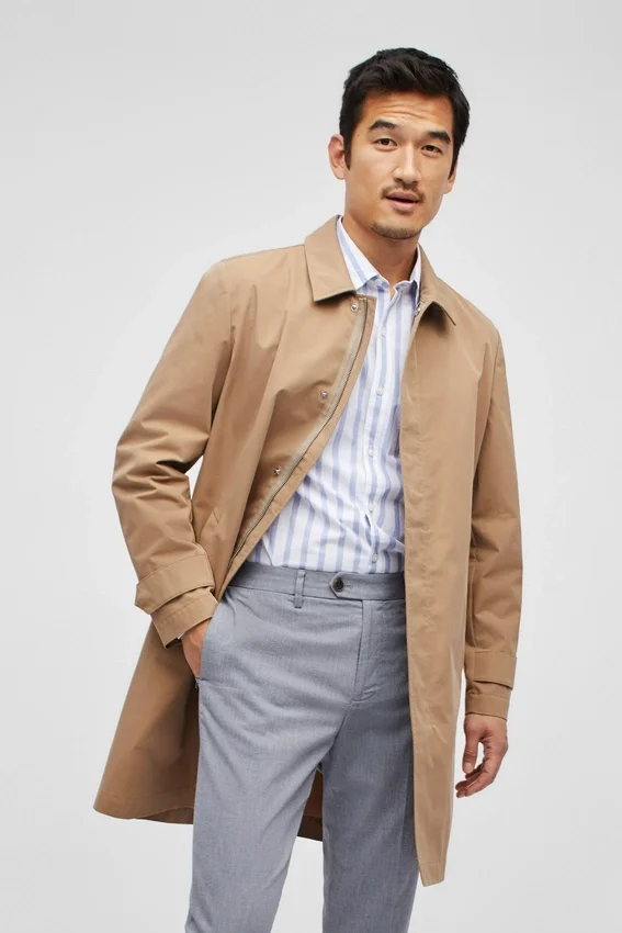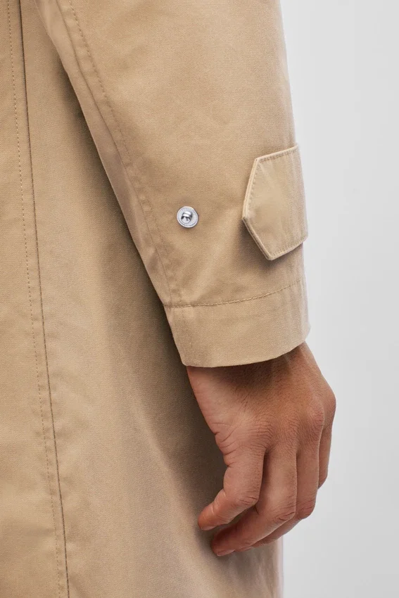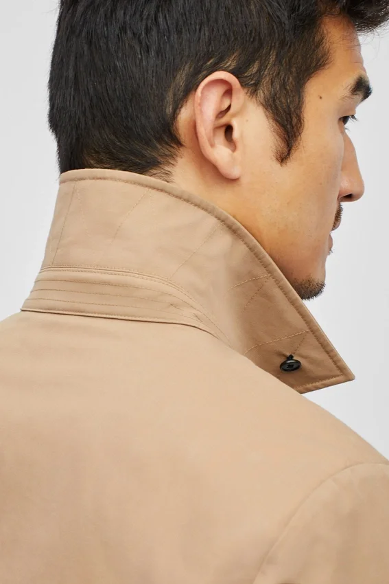 Italian Milled & Water Resistant | Vented Back with Flap | Interior Patch Pockets | Throat Latch Under Collar | Locker Loop | Zip Closure at Front with Hidden Snaps | Adjustable Snaps at Sleeve Cuffs