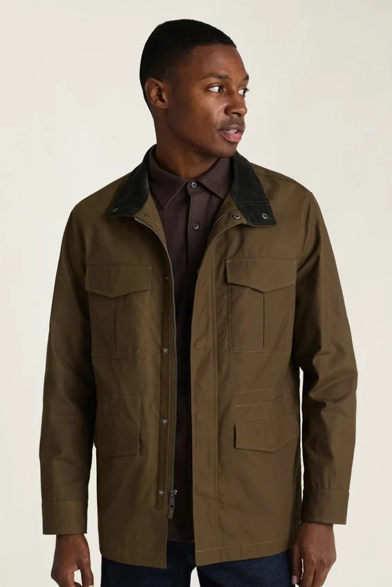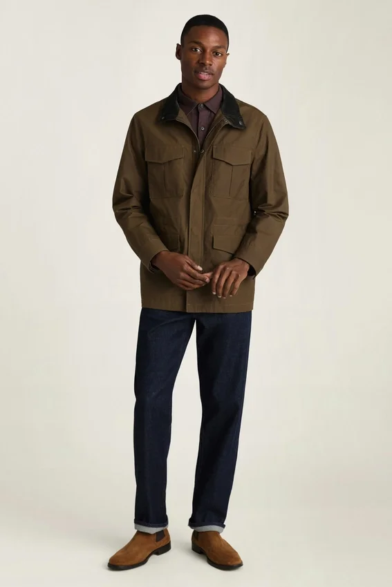 The British Waxed Field Jacket by Bonobos is Crafted from Rain-Resistant Cotton with a Lined Interior and Utility Pockets. A Men’s Waxed Field Jacket Built for Fall.