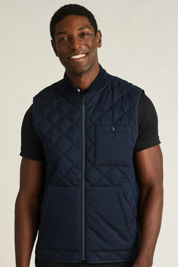 The Sportsman Quilted Vest by Bonobos Features a Weather-Resistant Shell and Primaloft® Insulation. A Lightweight Quilted Vest for Men Designed for Commutes or the Course.