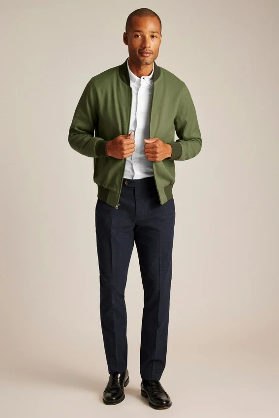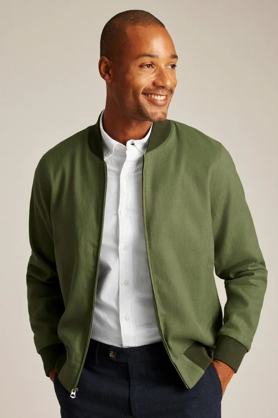 Classic Men’s Bomber Jackets Are Always in Style. The Herringbone Boulevard Bomber is a Stylish Olive Green Made from Herringbone Wool. Get It Today at Bonobos!