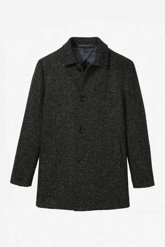 Classic Car Coat with Welt Hand Pockets. Half Lined. Button at Sleeve Cuff.