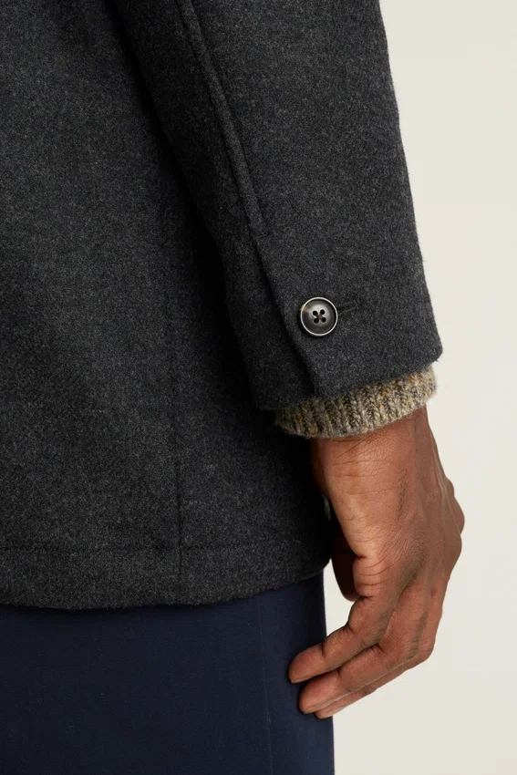 Crafted from Italian Double-Faced Wool | Water Repellent | Half Lined | Flap Pockets | Button Closures | Functional Button Cuff | Vent at Back | Interior Pockets | Locker Loop