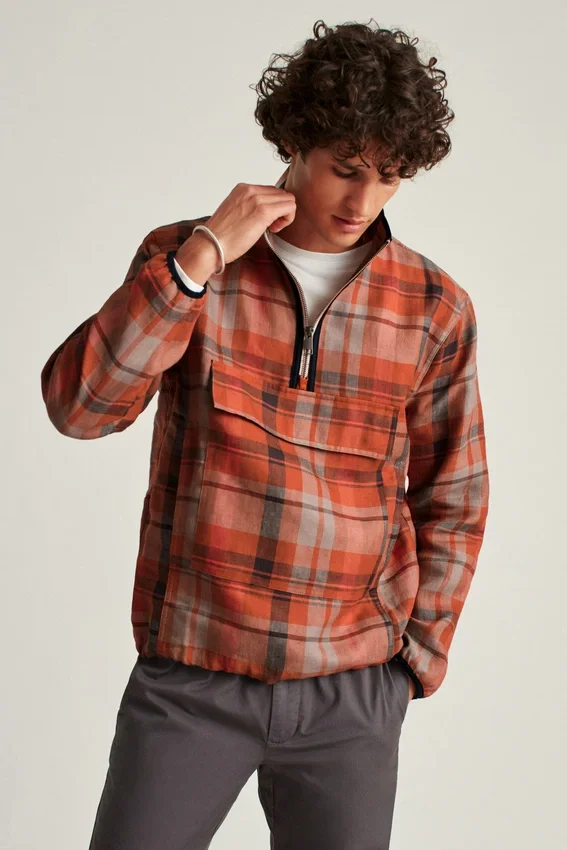 Linen from a Prestigious Mill in Portugal I Partial Zip Popover Style with Oversized Kangaroo Pocket and Button Closure I Side Entry Pockets I Hem Drawcord I Locker Loop