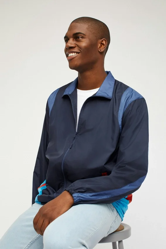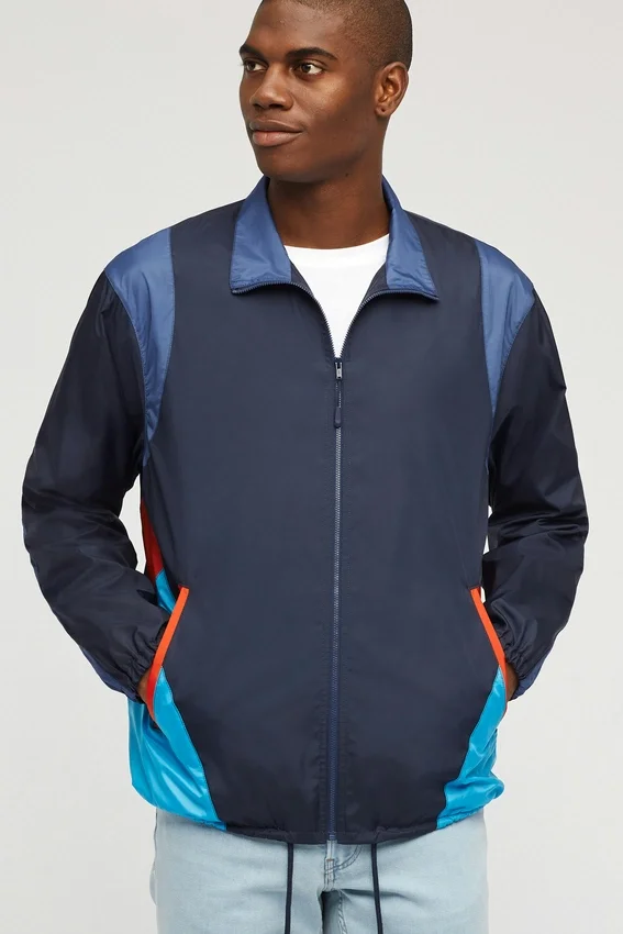 Fresh out of the 80’S is Our Retro Styled Windbreaker. It’s Blue and Light Blue with Orange Accents. Double Hand Pockets, Mesh Lining & Comfortable as Heck. Free Shipping!