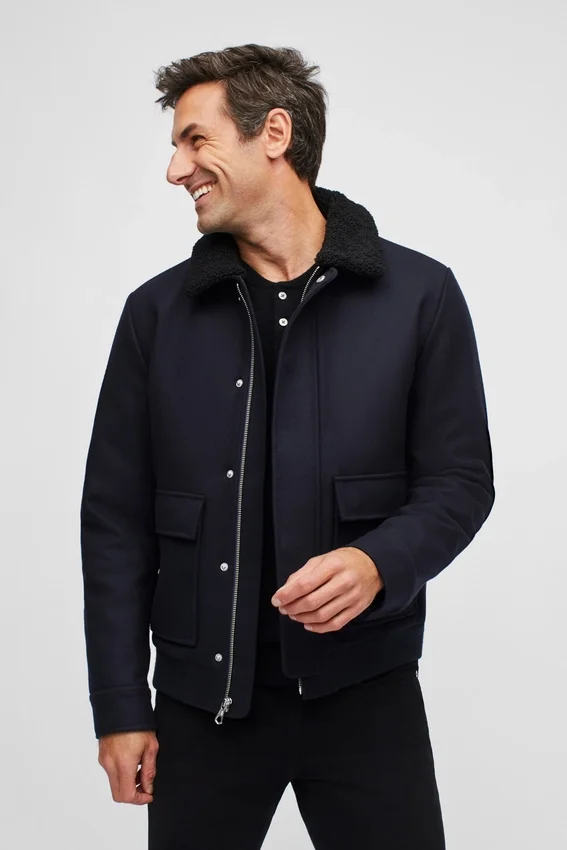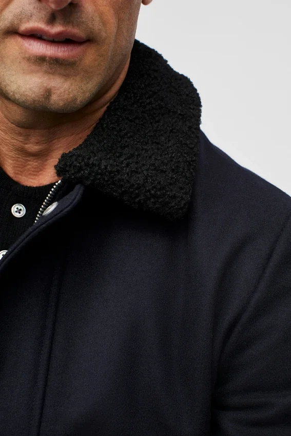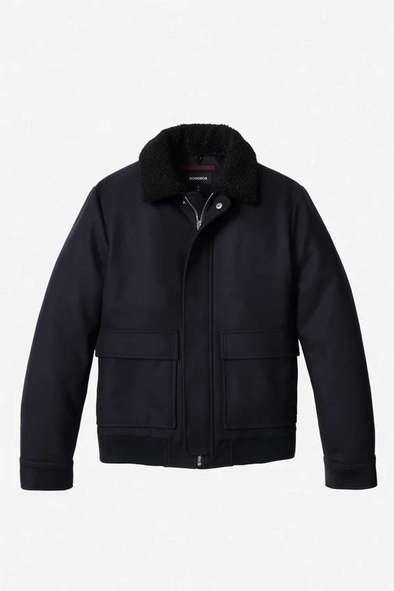 Water-Repellent Wool | Removable Faux-Shearling Collar | Zip Closure with Snap Wind Guard at Front | Patch Front Pockets with Side Entry | Filled Quilted Lining at Body and Sleeves | Snap Closure at Sleeve Cuff | Rib Trim at Hem | Interior Welt Pockets | Locker Loop at Interior