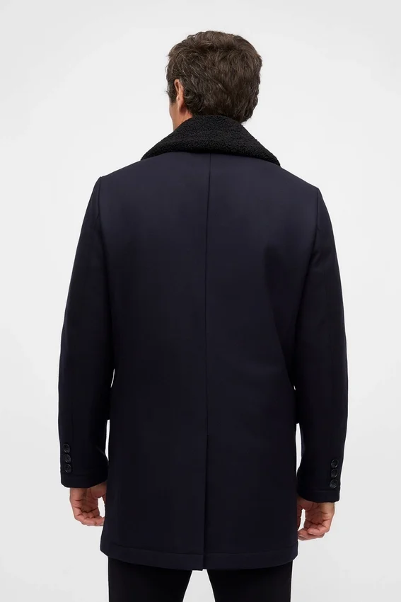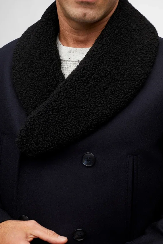 Water-Repellent Wool | Six-Button Double-Breasted | Removable Faux-Shearling Collar | Flap Pockets at Hip | Hand Warmers at Waist | Single Back Vent | Interior Welt Pockets | Filled Quilted Lining at Body and Sleeves | Locker Loop at Interior