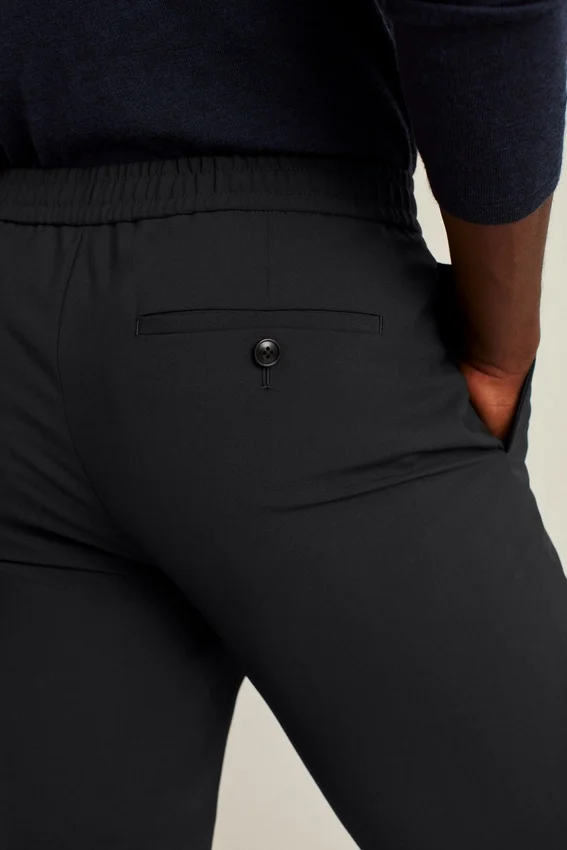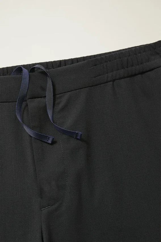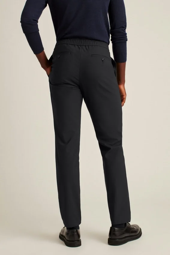 Business Meets Comfort with Refined, Four-Season Wool Partnered with an Elastic Waistband.