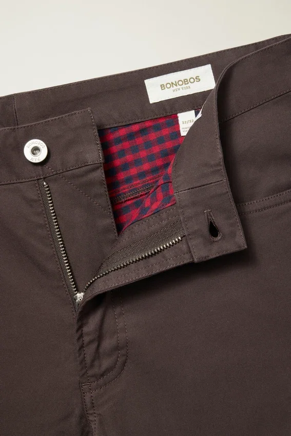 Solid Shell Fabric with Holiday Inspired Yarn Dyed Plaid Lining | Branded Metal Shank | Zip Fly with Button Closure | Plaid Pocketing