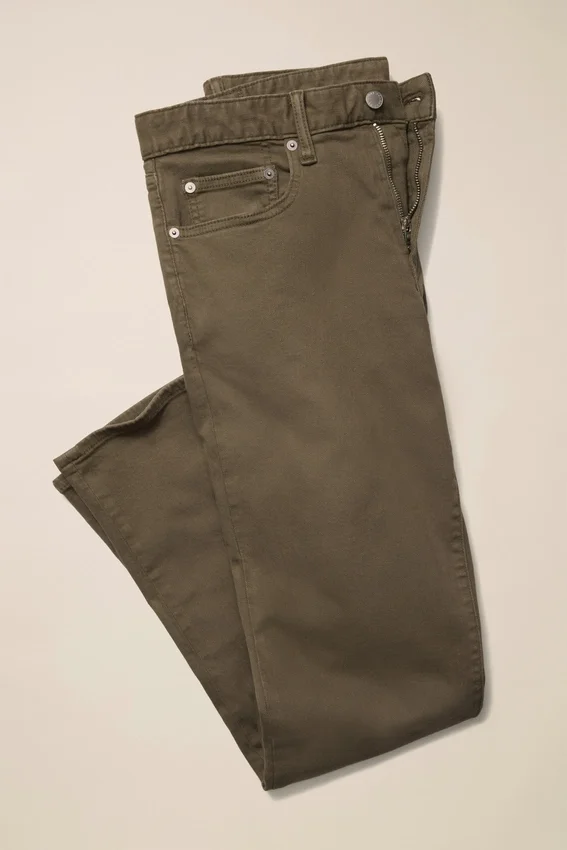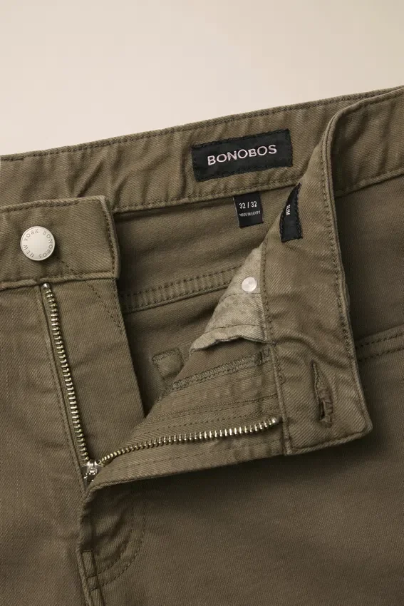 Extra Stretchy Cotton | Garment Dyed | 5-Pocket Styling | Signature Curved Waistband | Thoughtfully Sourced Metal Hardware | Okeo-Tex & Fsc Certified Branded Paper Patch