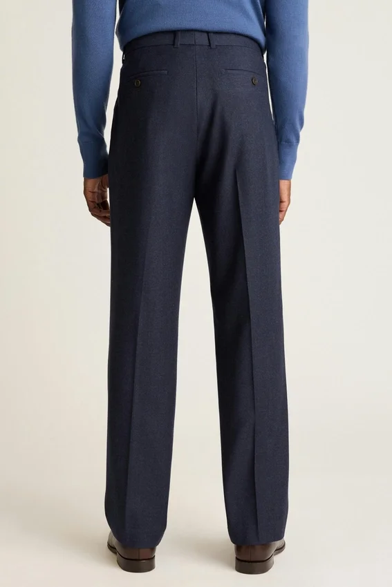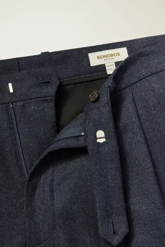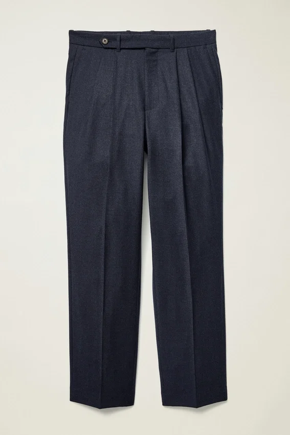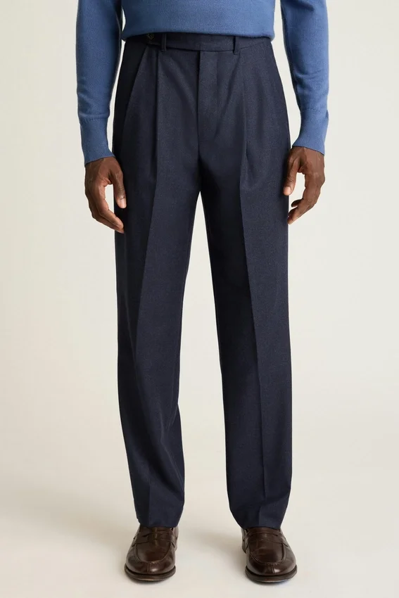 Premium Italian Wool Flannel with Elegant Pleats That Offer Midcentury Sophistication.