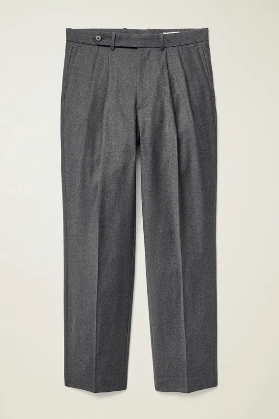Premium Italian Wool Flannel with Elegant Pleats That Offer Midcentury Sophistication.
