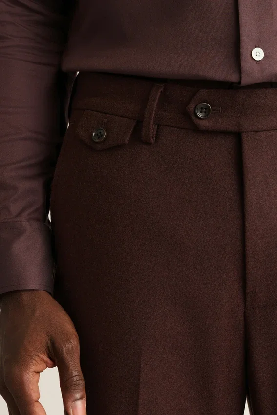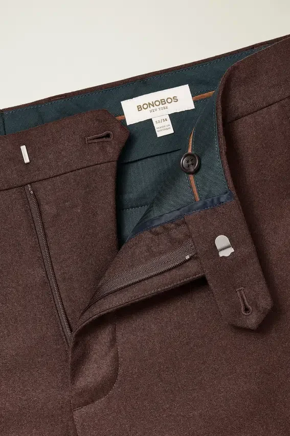 Fabric from Marzotto | Tab Closure at Front | Zip Fly | Ticket Pocket | Slant Pockets with Pick Stitching | Front Leg Lining
