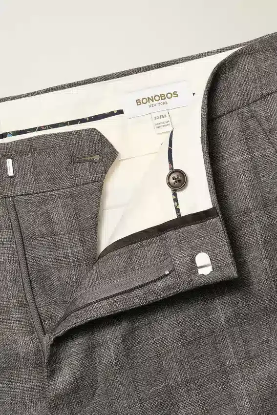 Classic Hook and Bar Closure | Button-Through Back Pockets | Custom Bonobos Print at Interior Waistband