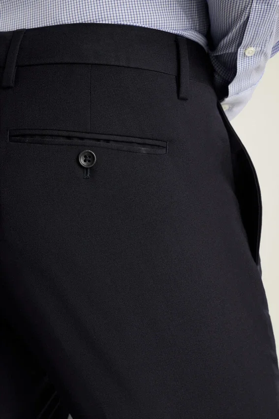 This Pant is Made of an All-Season Wool Stretch Fabric, and is Perfectly Polished for Any Occasion. | Hook and Bar Closure | Button-Through Back Pockets | Front Leg Lining