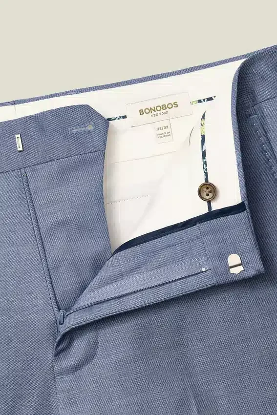 Hook and Bar Closure | Button-Through Back Pockets | Front Leg Lining