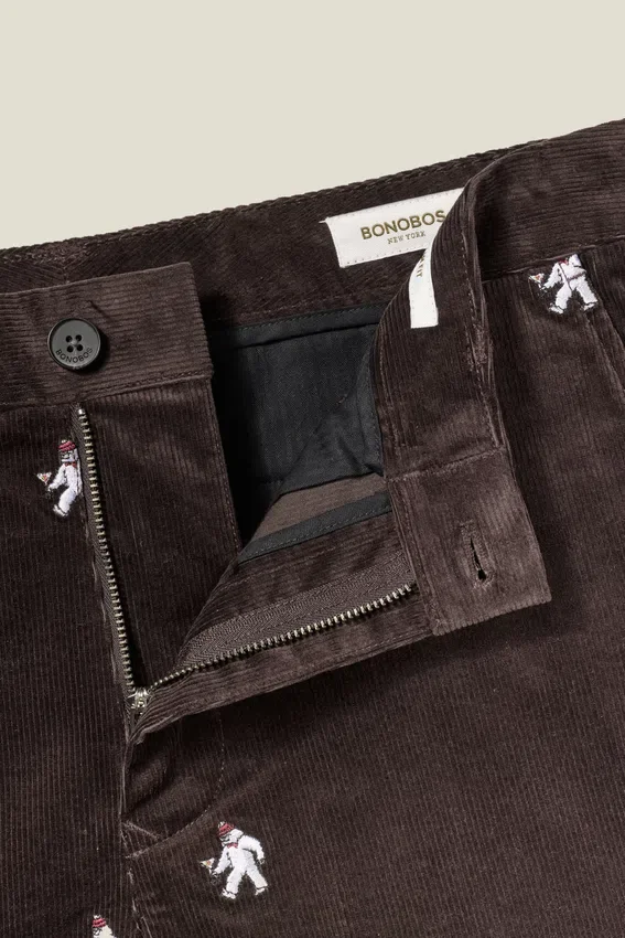 14 Wale Corduroy | Embroidered Critter | Signature Curved Waistband | Slide Snap for a More Secure Waistband Closure