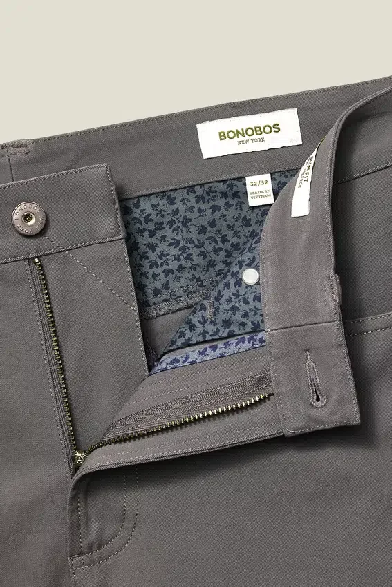 Signature Curved Waistband | Branded Shank & Rivets | Bonobos Flag Label at Coin Pocket | Printed Pocketing