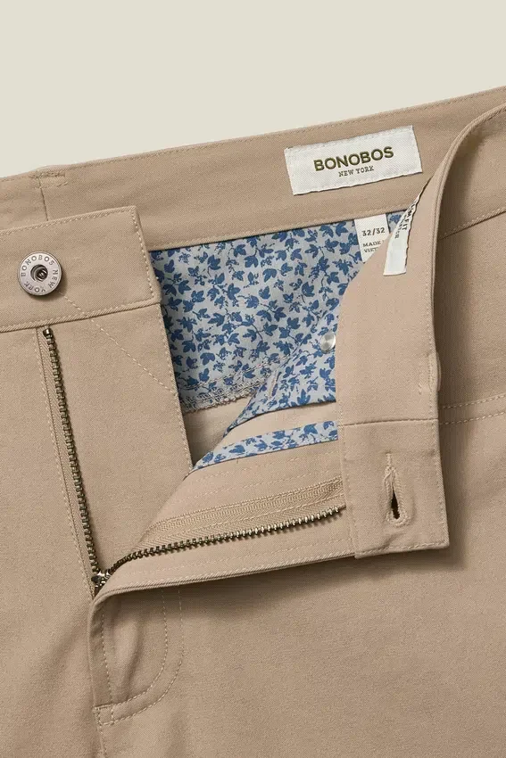 Signature Curved Waistband | Branded Shank & Rivets | Bonobos Flag Label at Coin Pocket | Printed Pocketing