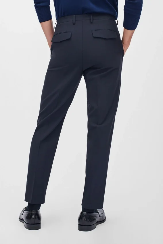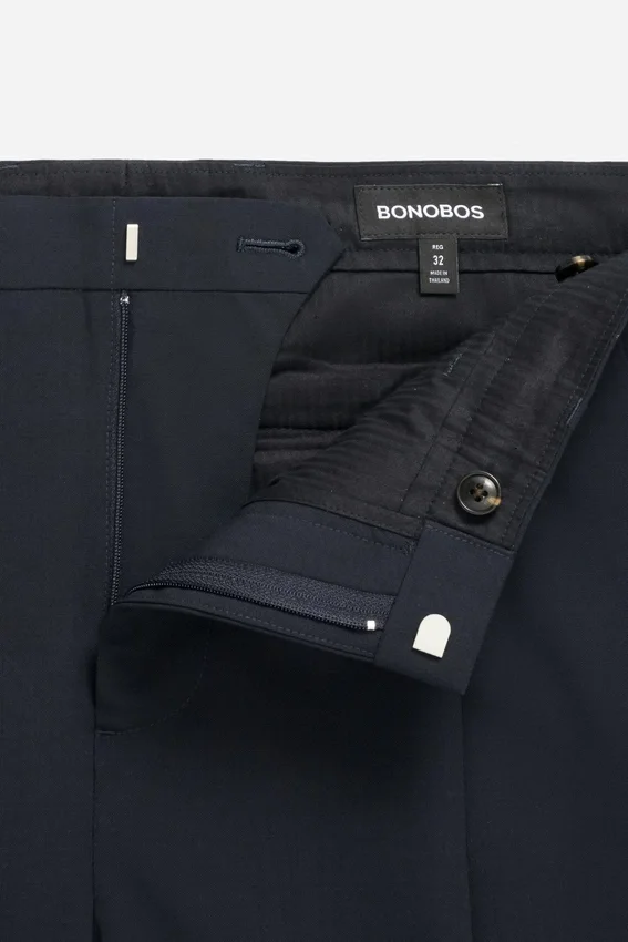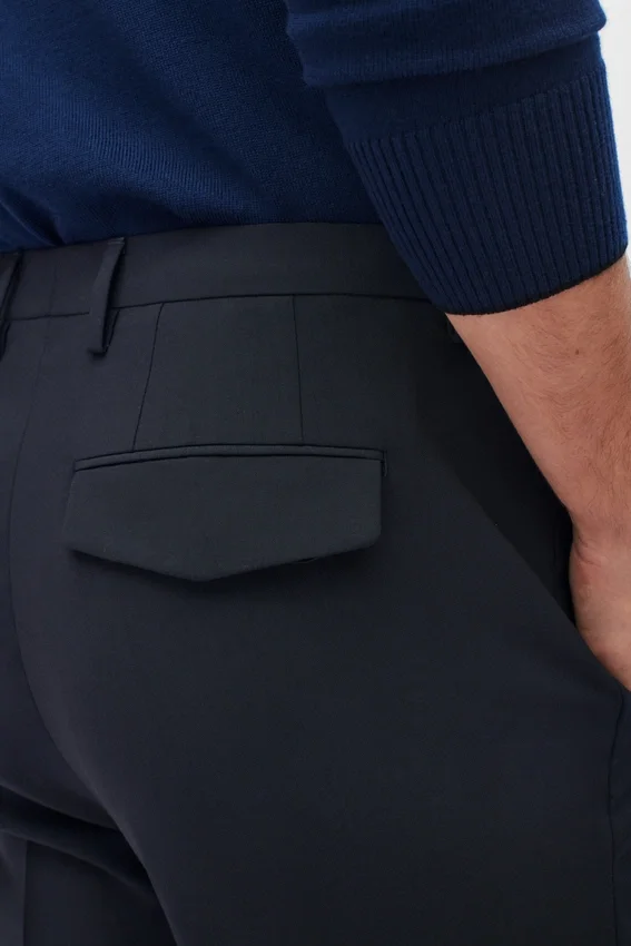 Stretch Wool Milled in Italy | Signature Contour Waistband with Hook and Bar Closure | Welt Back Pockets with Buttons and Flaps