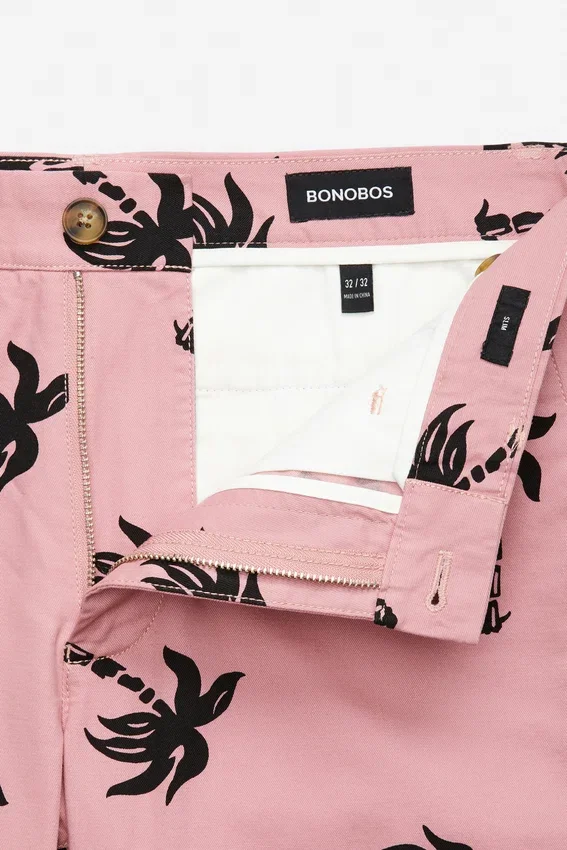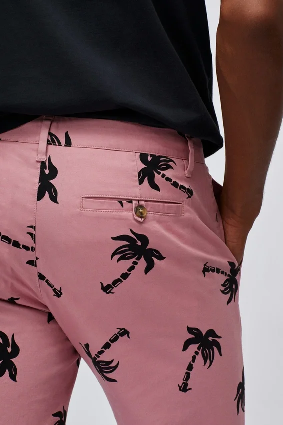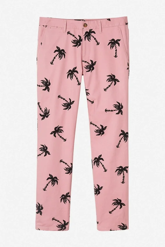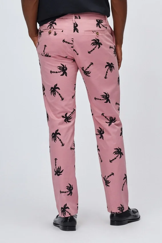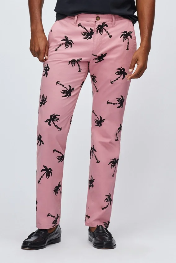 Have Some Fun with Our Printed Stretch Chinos, Available in Colors Like Pink Palm Trees and Tropical Navy Stamp. Slim Fit and Great for Staying Unique. Free Shipping!
