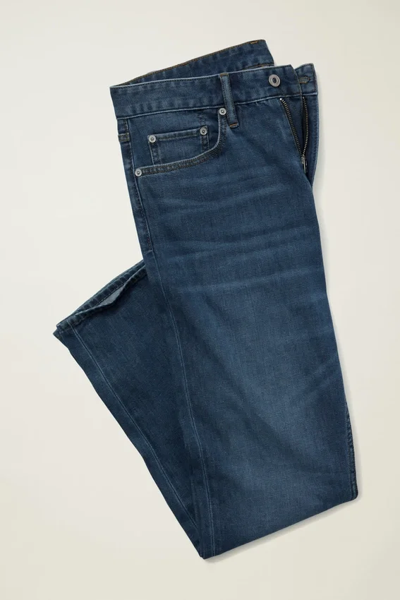 5 Pocket Styling with Shank Closure and Rivets | Striped Pocketing | Full Grain Leather Patch