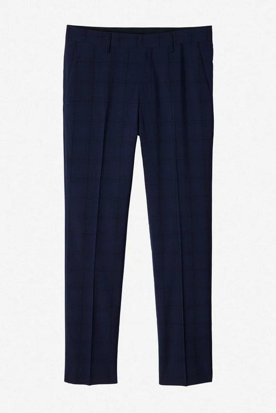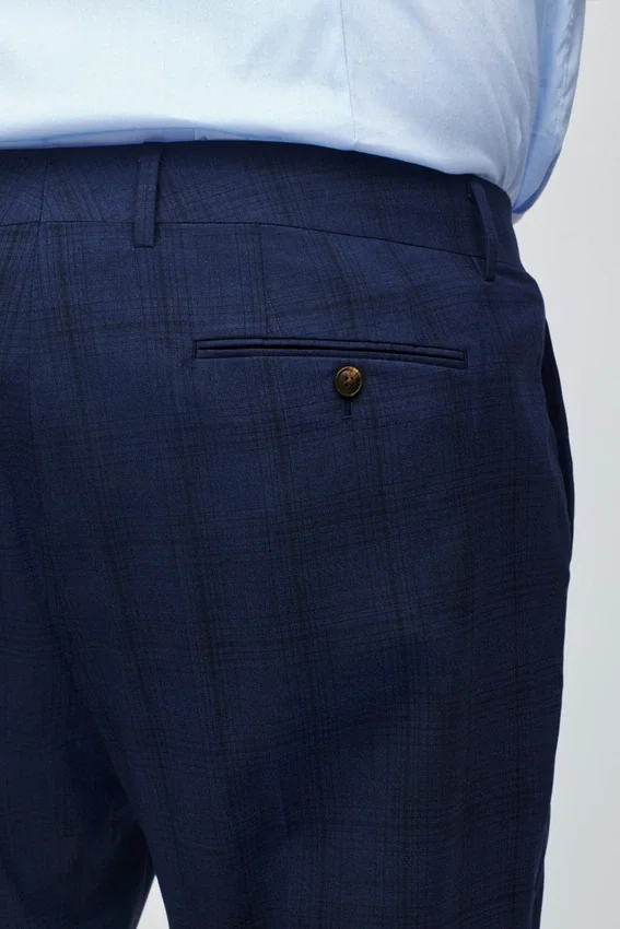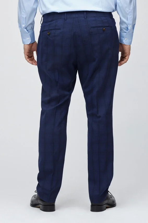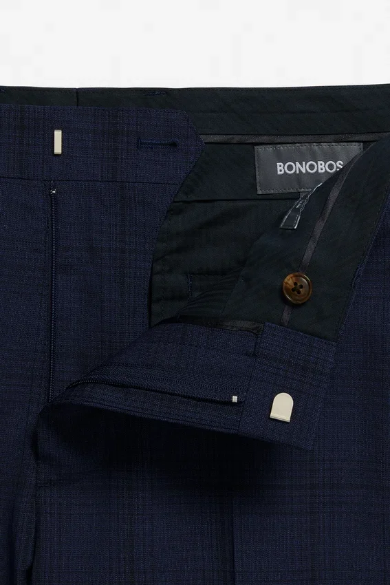 Signature Contour Waistband Construction | Hook and Bar Cf Closure | Clean Slanted Front Pockets | Welt Back Pockets with Buttons | Tailorable Center Back Seam | Blind Hem Construction | Half of the Front Leg Panel is Lined for Extra Comfort | Navy Herringbone Interior Waistband Curtain