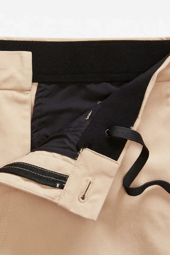 Signature Bonobos Curved Waistband with Button Closure at Center Front. Brushed Elastic at Interior Waistband for Comfort. Back Right Pocket with Zipper Closure, Back Left Pocket with Hidden Snap Closure.