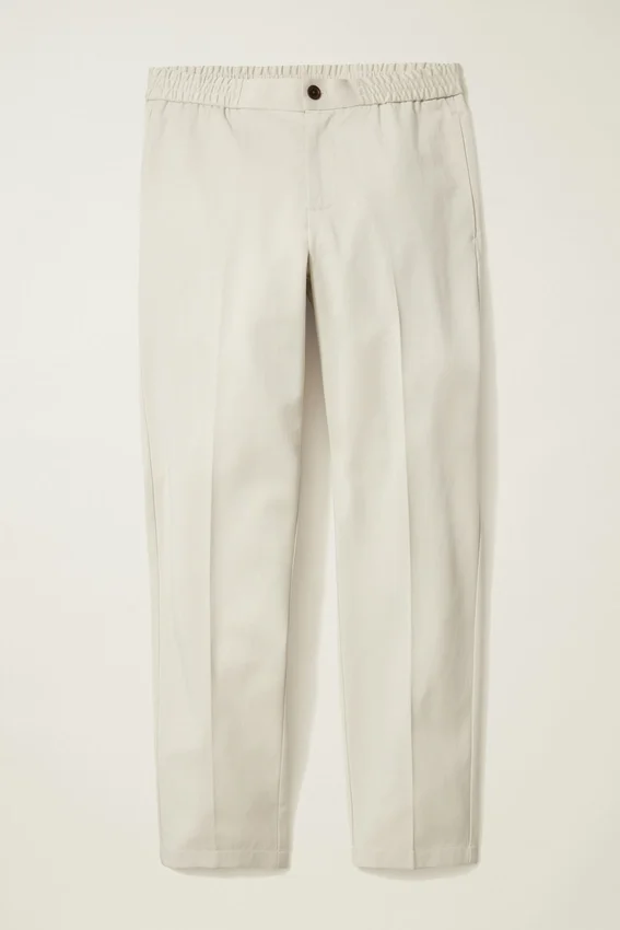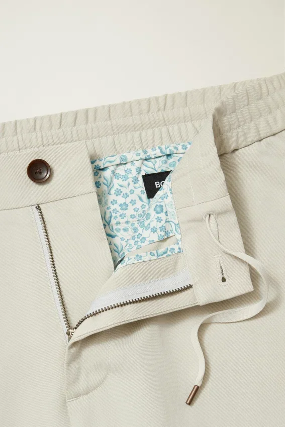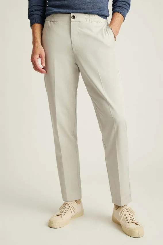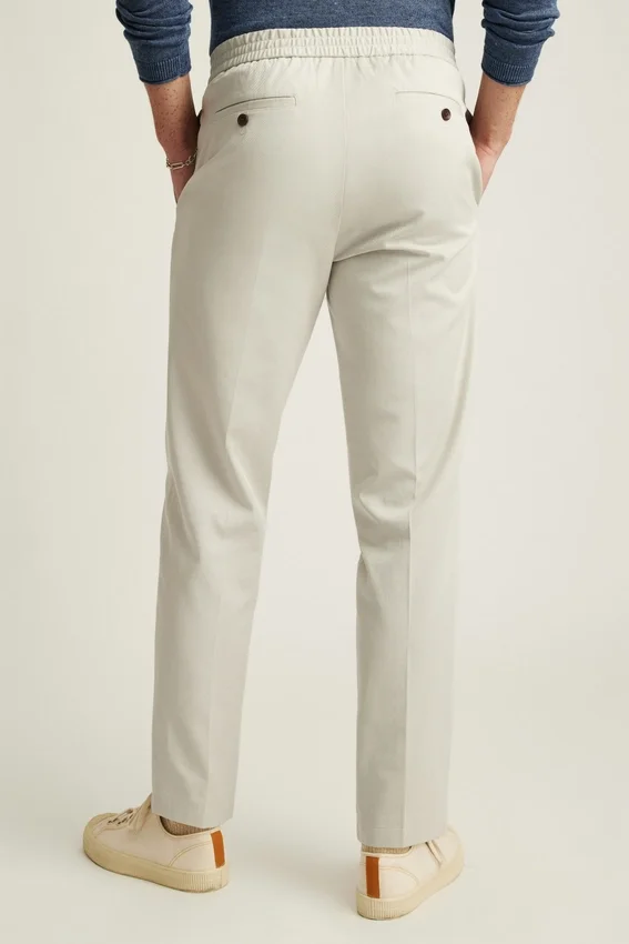 Hybrid Elastic Stretch Waistband | Tencel + Cotton Blend Fabric | Flat Knit Interior Drawcord | Button Front Center Front Closure | Back Welt Pockets with Button Closure