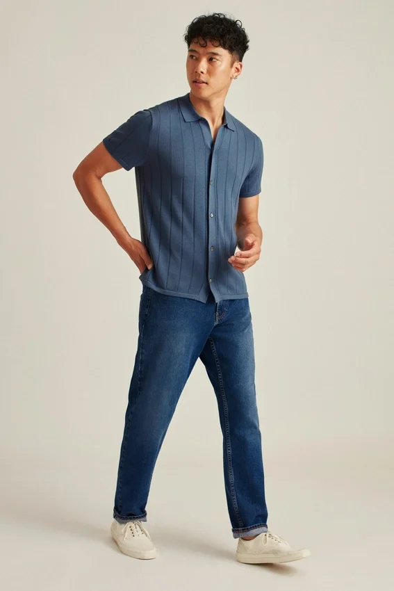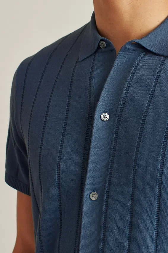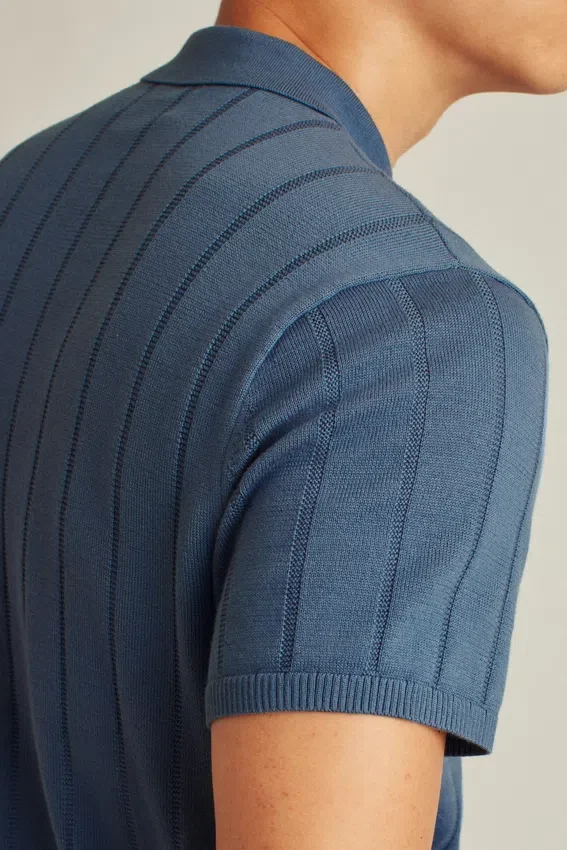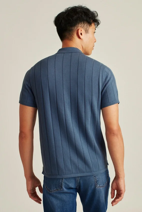 Soft and Breathable Cotton Yarn in Full Placket Polo Body with Flattering Vertical Texture Stitch for Fashion-Forward Vibes