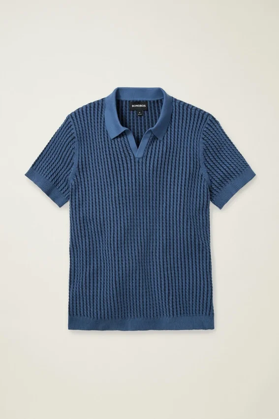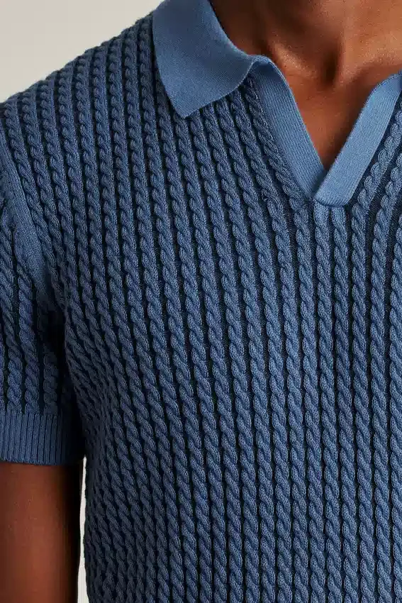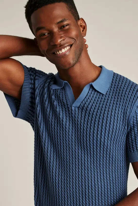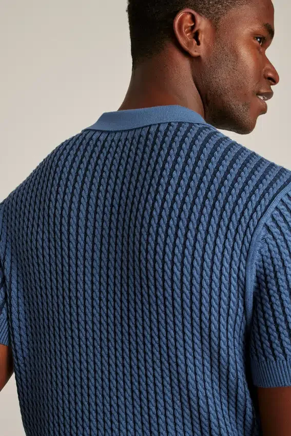 Your Favorite Men’s Sweater for Men Styled Like a Polo with a Vintage-Inspired Style Merged with Business Casual Vibes. Plus, a Cable Stitch for Sophisticated Vibes.