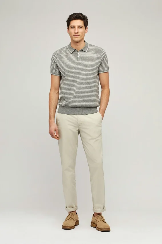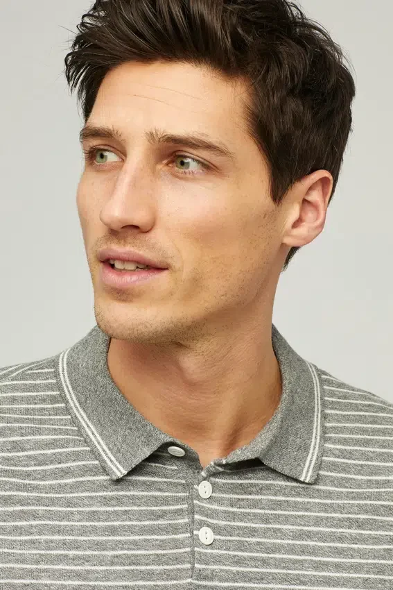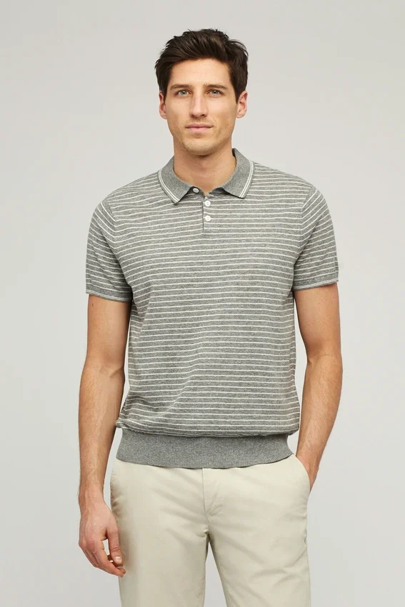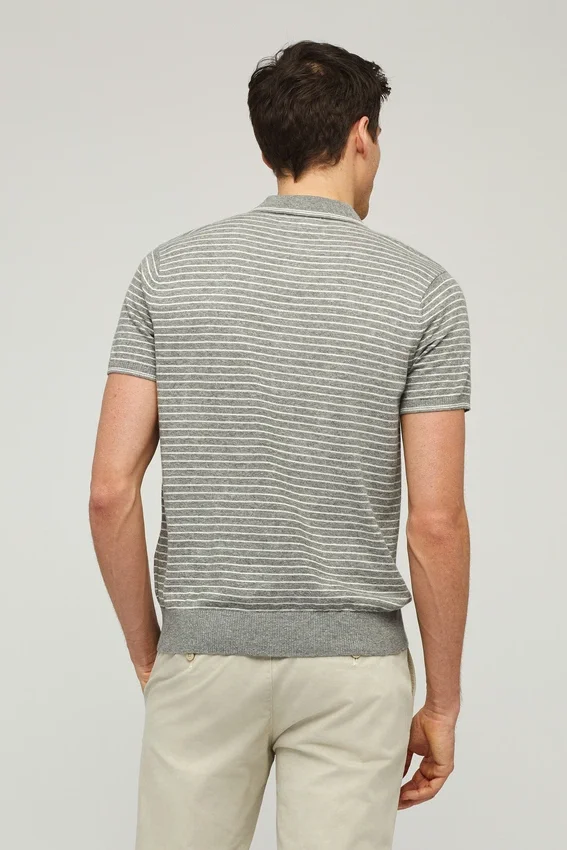 Breatheable Lightweight Cotton Linen Yarn | Yarndye Stripe | 1X1 Tipped Rib Collar with Open Placket