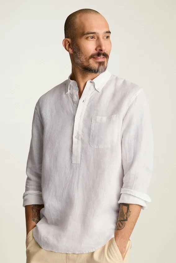 Discover the Versatile Everyday Linen Popover Shirt at Bonobos. This Collared Shirt Offers a Crisp Look Yet Relaxed Fit for Your Work-Friendly Wardrobe.