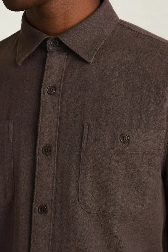 Soft Touch Stretch Flannel Fabric | Two Chest Pockets | Heather Grey Fabric Placed at the Interior Back Yoke and Interior Button Placket