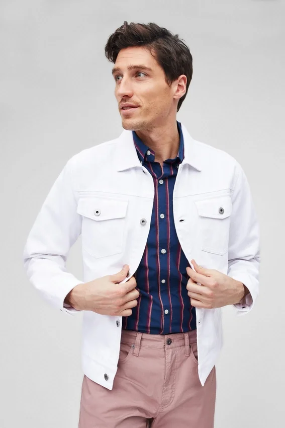 Patch with Flap Pockets | Single Welt Hand Pockets | Classic Double Needle Stitch Details | Classic Metal Shank Buttons | This Jacket is Designed for a Slim, Yet Comfortable Fit.