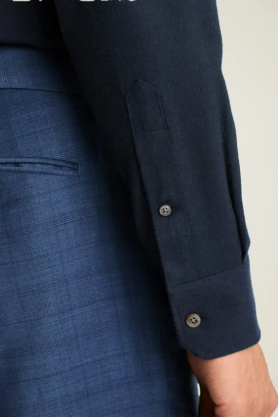Brushed Merino-Blend Fabric from Somelos | French Placket | Custom Floral Bonobos Collar Stays | Double-Button Cuffs | Real Shell Buttons