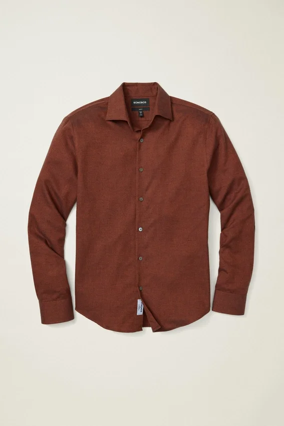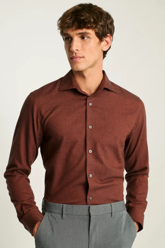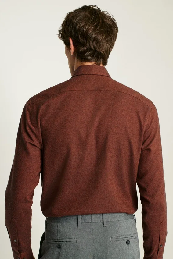 Brushed Merino-Blend Fabric from Somelos | French Placket | Custom Floral Bonobos Collar Stays | Double-Button Cuffs | Real Shell Buttons