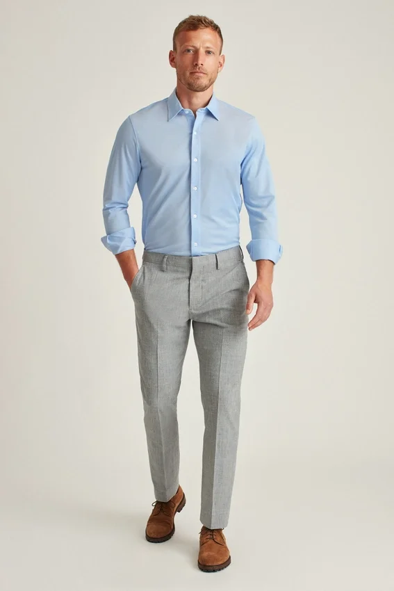 Modified Point Collar | Double-Button Barrel Cuffs | French Placket | “Stay Handsome” Collar Stays | Wrinkle Resistant