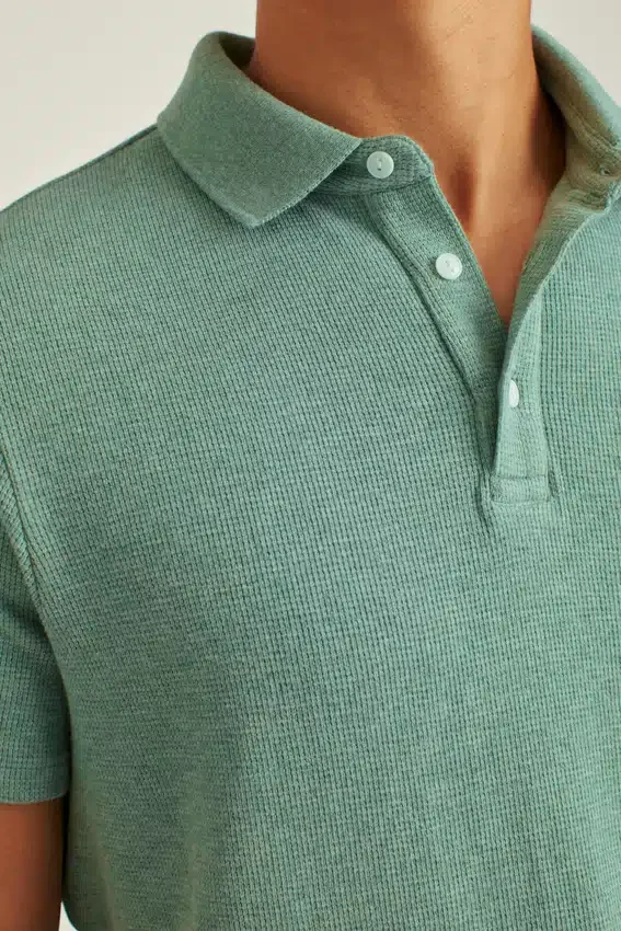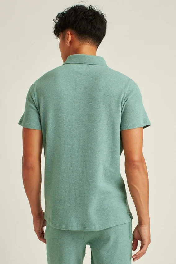 Textured Waffle Construction | Flat-Knit Rib Collar | Polo Button Placket