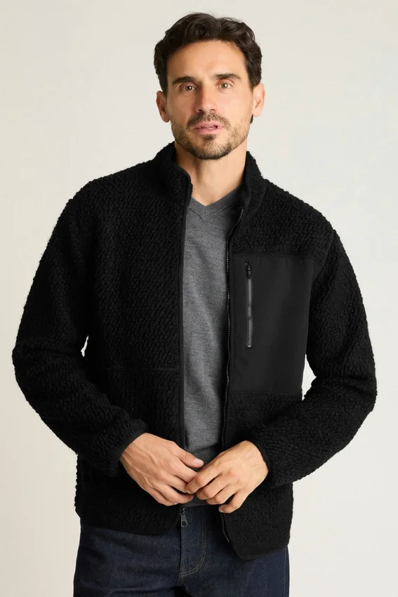 High-Pile Textured Fleece | Fully Lined | Funnel Neck with Zipper Closure | Patch Pocket at Chest | Zippered Welt Hip Pockets