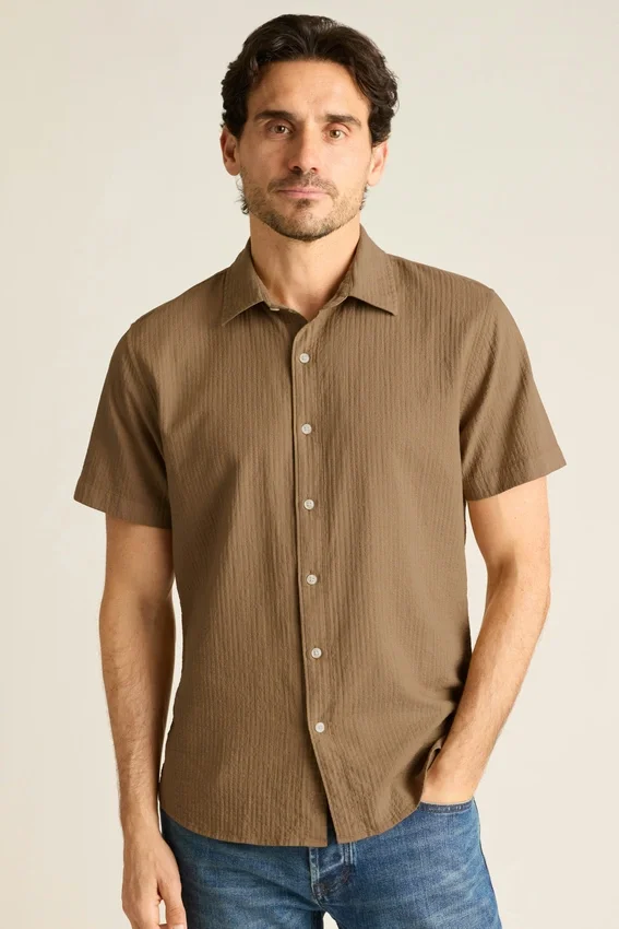 The Montauk Short Sleeve Shirt by Bonobos is Crafted from Textured Fabrics for Versatile Wear. A Men’s Short Sleeve Button up Shirt Designed to Look Sharp Tucked or Untucked.