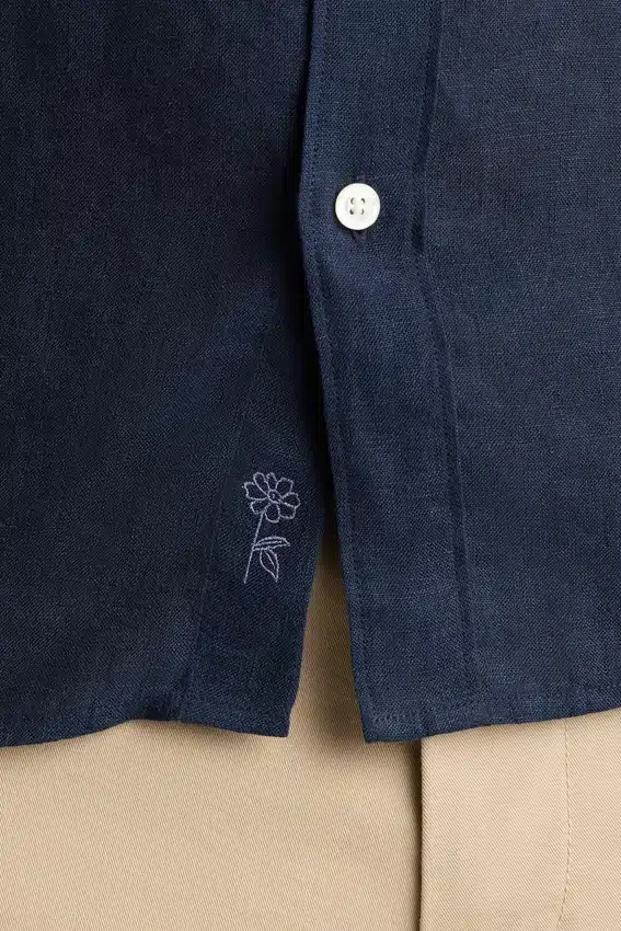 Chest Pocket | Subtly Curved Hem | Bonobos Floral Embroidery at Under Placket