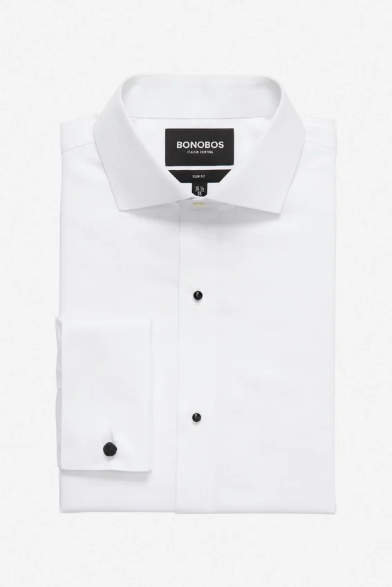 Includes Metal Studs | Mother-Of-Pearl Buttons | Split-Back Yoke | Double-Knife Pleats | French Cuffs