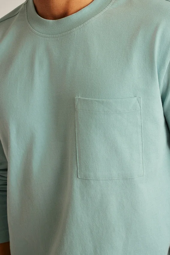 Midweight Jersey Fabric in Soft and Breathable Cotton | Chest Pocket | Rib Neck Trim | Contrast Color Fabric at Interior Back Neck