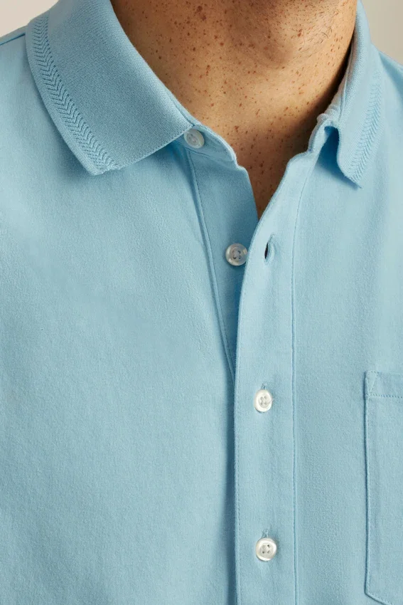 Midweight Jersey Cotton | Extra Long Button Placket | Ribbed Collar and Cuffs | Chest Pocket